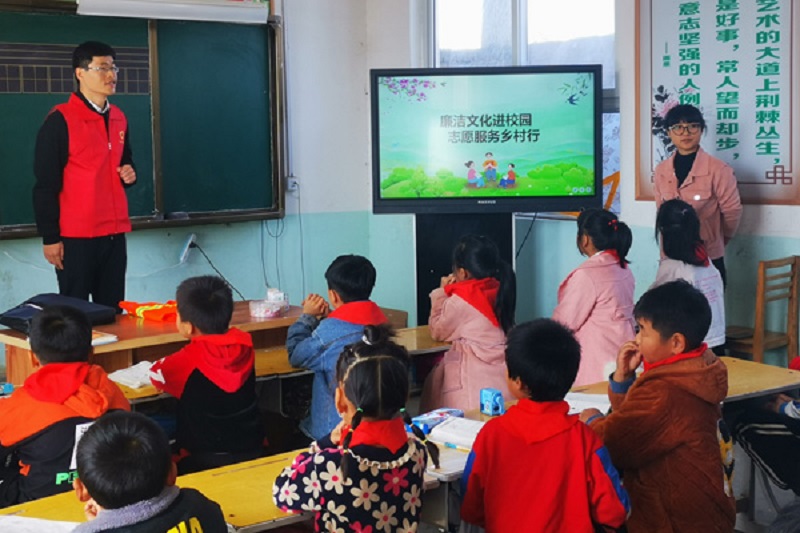 圖為河南省紀委監委機關干部在開展“廉潔教育進課堂”志愿服務活動。